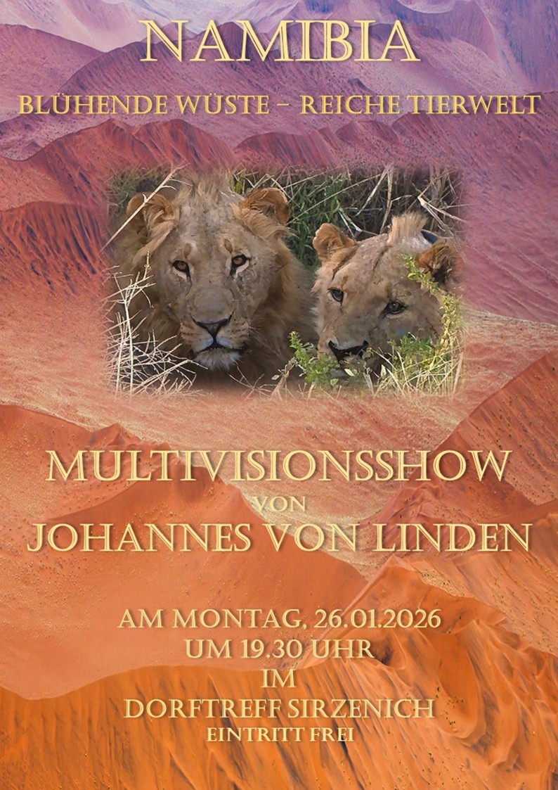 26. 01. 2026: Multivisionsshow Namibia, ab 19:30 Uhr Info hier...