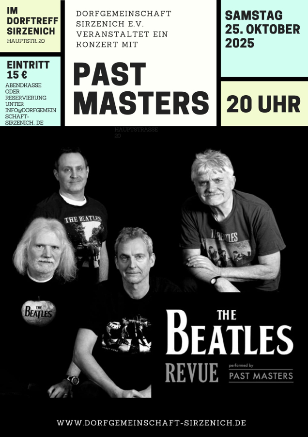 25.10.2025 Beatles-Revue mit der Band Past Masters , ab 20:00 Uhr, Info hier...
