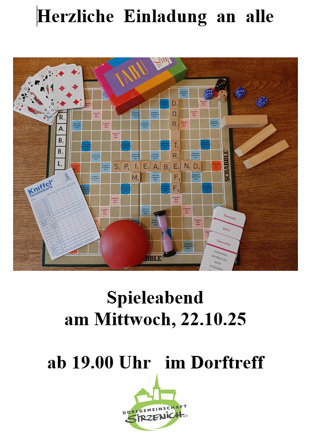 22.10.2025 Spieleabend ab 19:00 Uhr, Info hier...
